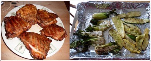 Thanks to Crystal, I am an advocate for buying local meat and produce whenever possible.  I have a wonderful local resource in the Buckland Farmers Market in Fauquier county VA. One of my favorite fish is also a local fish from the Chesapeake Bay, the Rockfish, or Striped Bass.  We almost did have this delicacy though.  On the brink of extinction in this area, Virginia and Maryland placed a moratorium on the catch of this fish from 1985-1990. Once recovered to sustainable levels, some restrictions have stayed in place to this day on the dates and sizes they can be caught.  This means there are only limited times from spring to fall that you can get locally caught Rockfish fresh from your local markets (Wegmans and Whole Foods are good sources to buy the fish).  Grilling is my favorite preparation method for the fish, make sure you oil the fish and the grill surface first so it does not stick.  For turning I use a pair of turkey lifters to get between the grates and under the fish to flip in one piece.